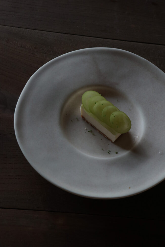酢橘とマスカットのレアチーズケーキ(器:加藤 かずみ)