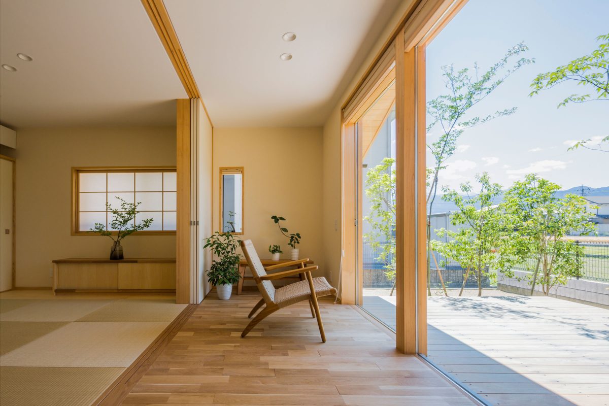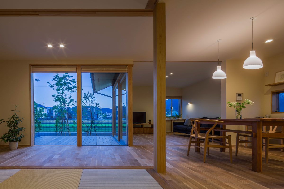 The ceiling of the living room is gently curved to intentionally create a feel of being safely enveloped. While the rooms are connected as a single, large space, they are each designed with its own unified interior to prevent a sense of monotony.