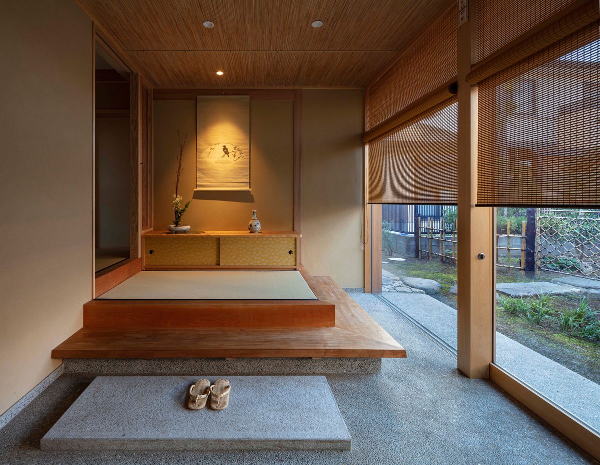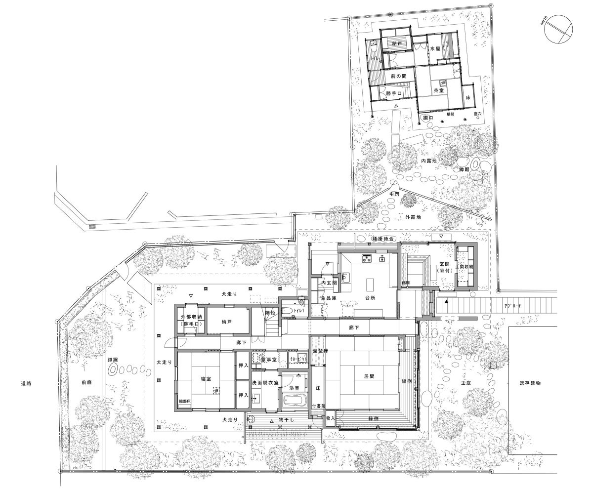 Here was a project that involved razing the original house that had stood for over a century and building anew. We took advantage of the plot’s “L” shape to construct a primary building as the residence with a separate tea house annex.