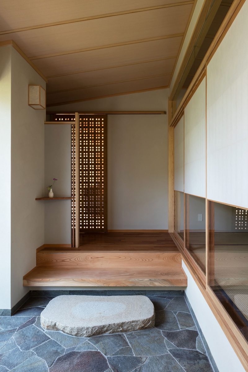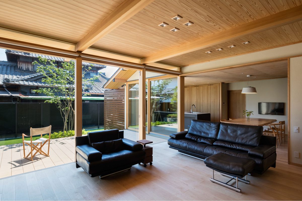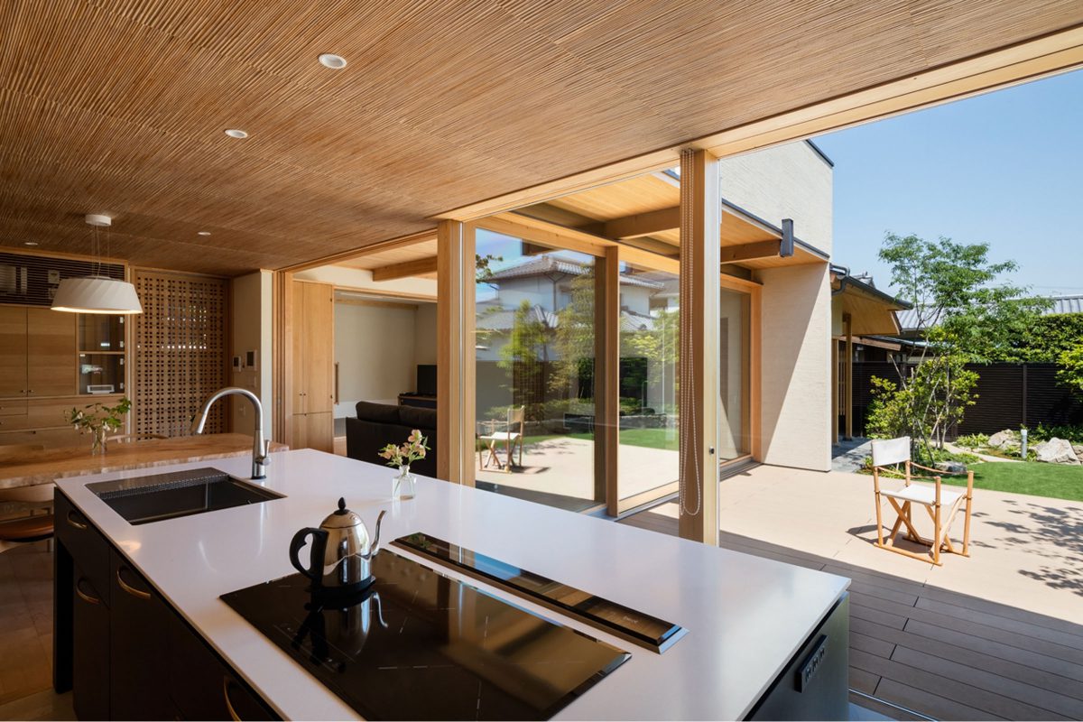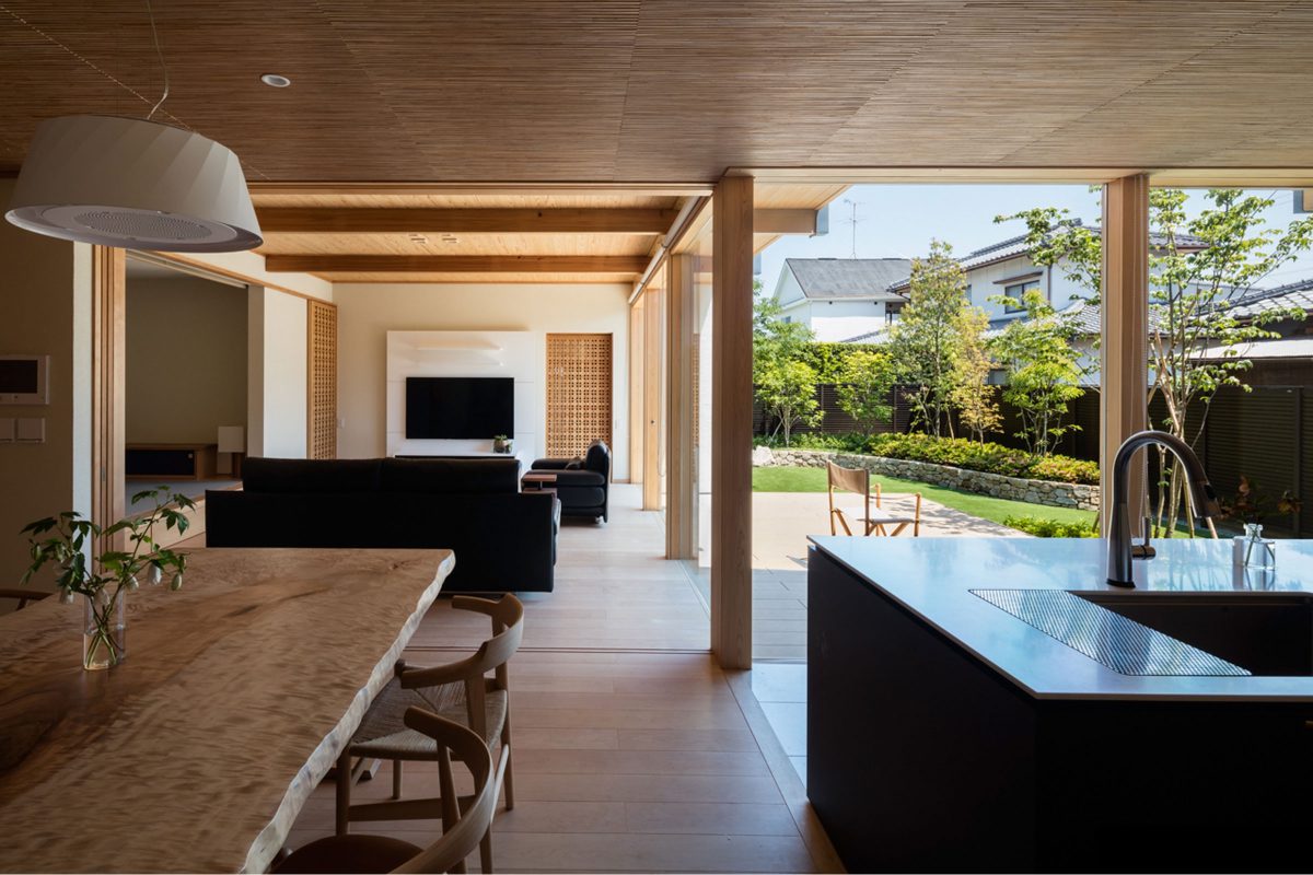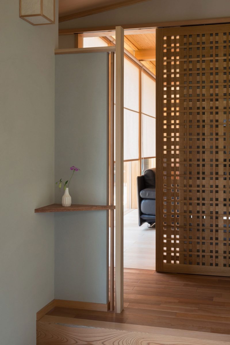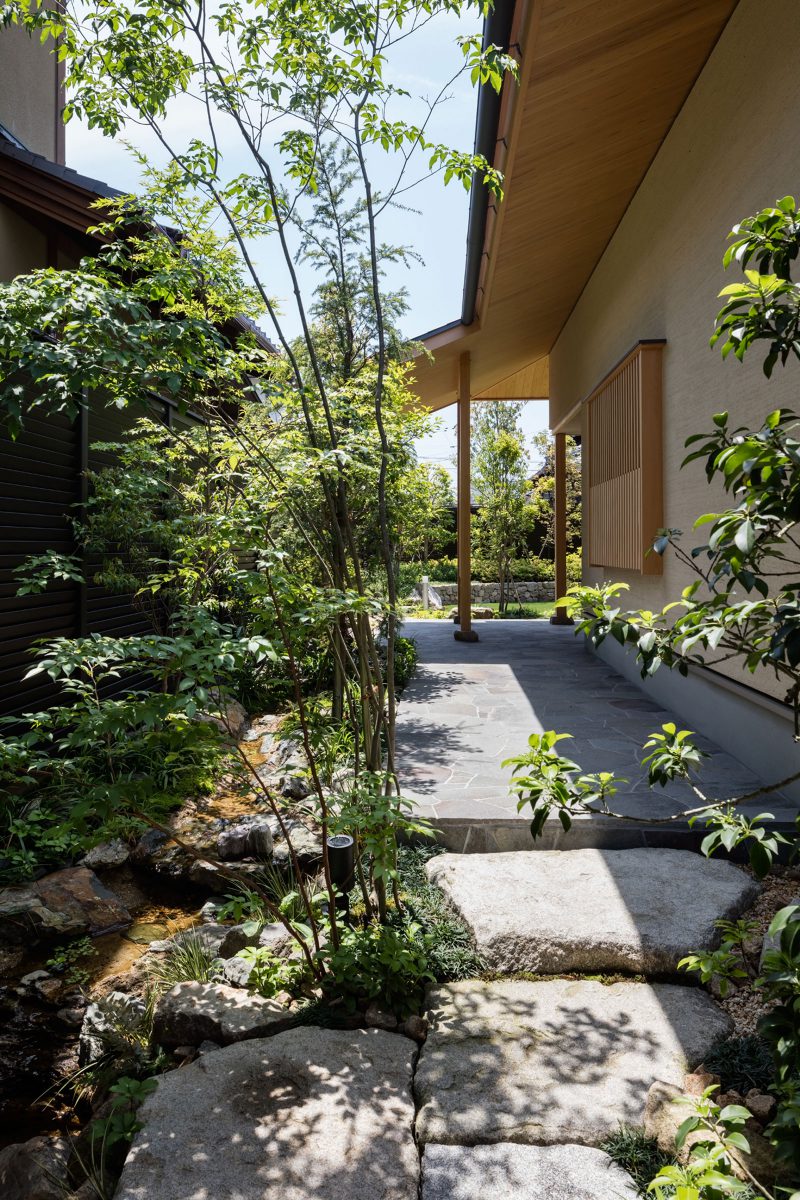 The L-shaped garden gives the family a great deal of freedom. The gate, approach, entrance lobby and tatami-floored living room provide plenty of space for entertaining guests.