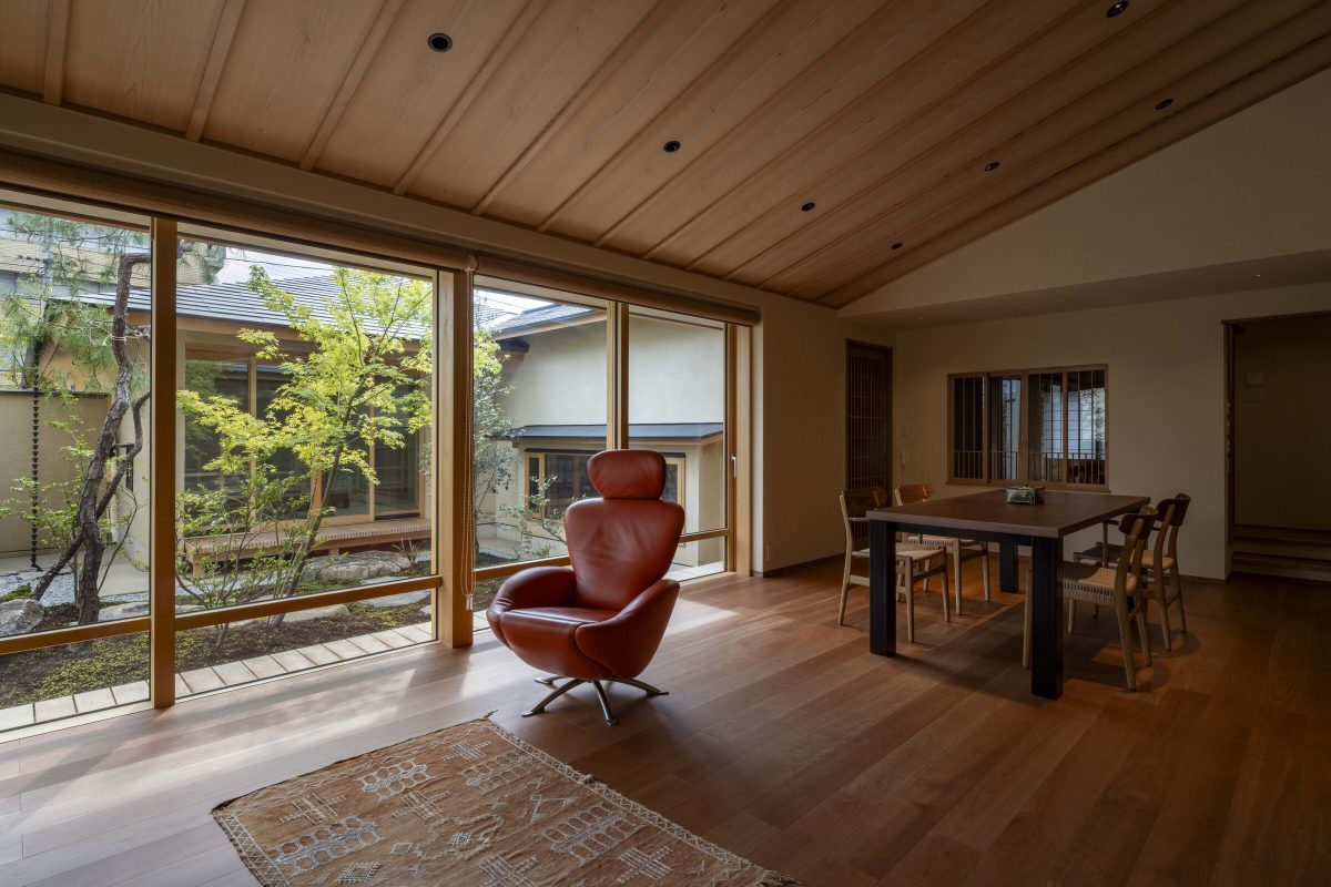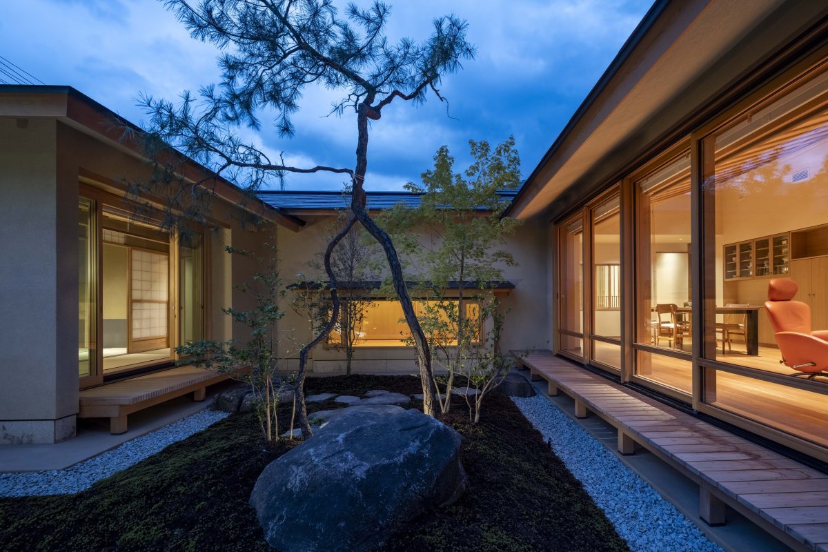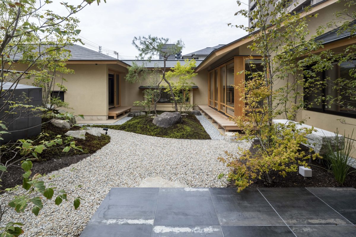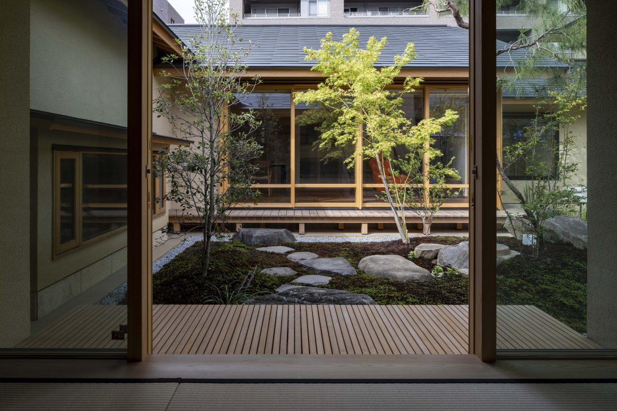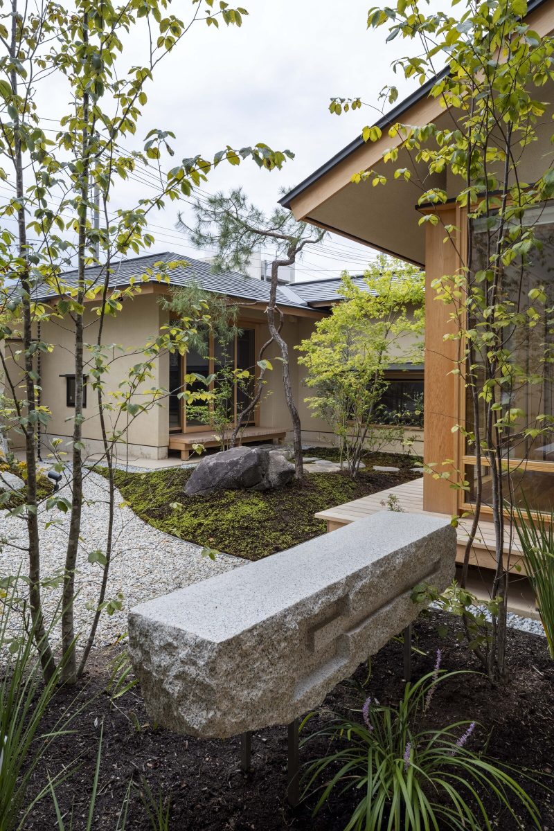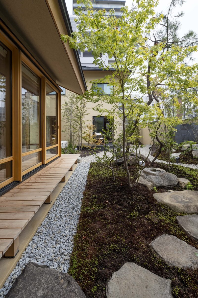 are arranged so that they enclose the main garden, with functional areas in the connections. In this way, they create a flow of time that is separate from the hustle and bustle of the city.