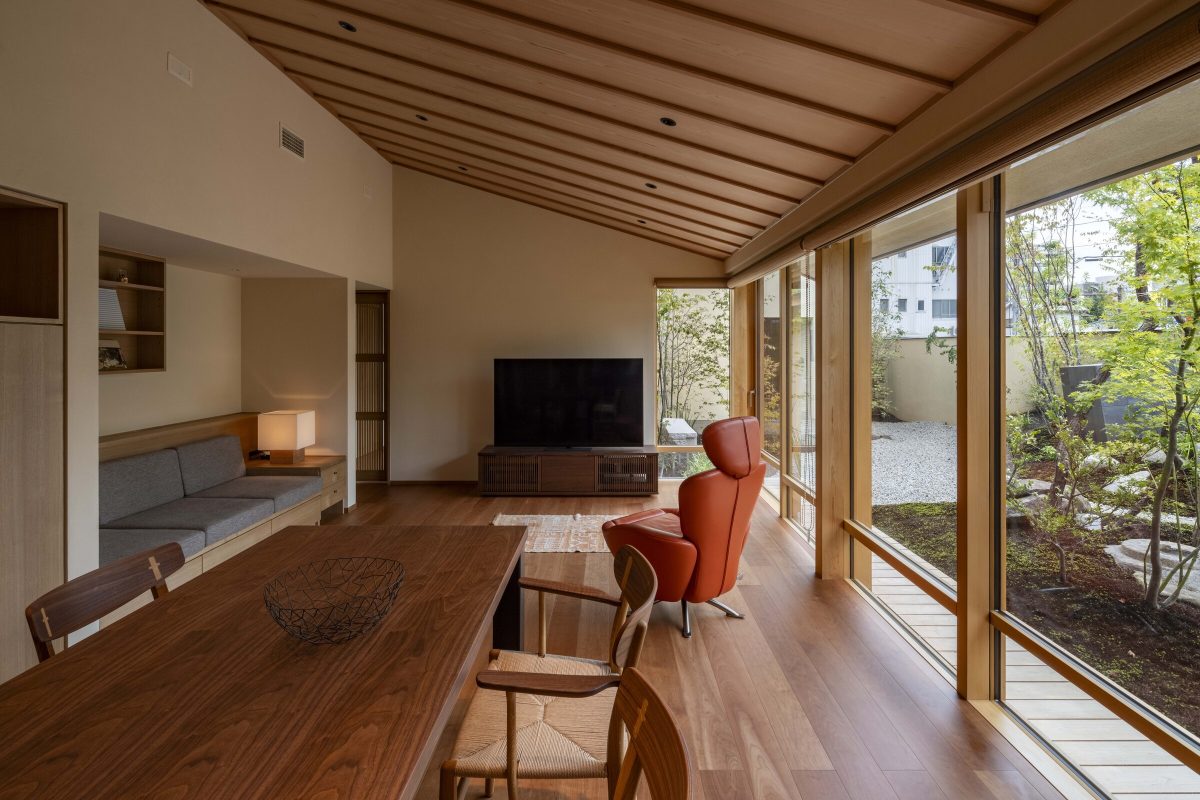 The challenge was creating a calm living environment along a busy street that ensures privacy from the surrounding high-rises.